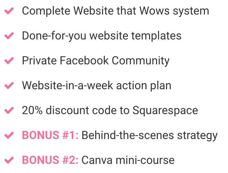 Instant + lifetime access to the complete Website that Wows system, so that you can start creating your client winning website TODAY ($997 value)